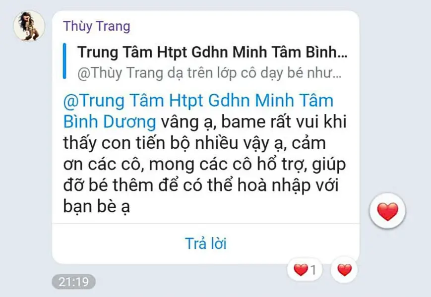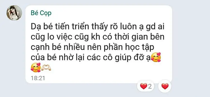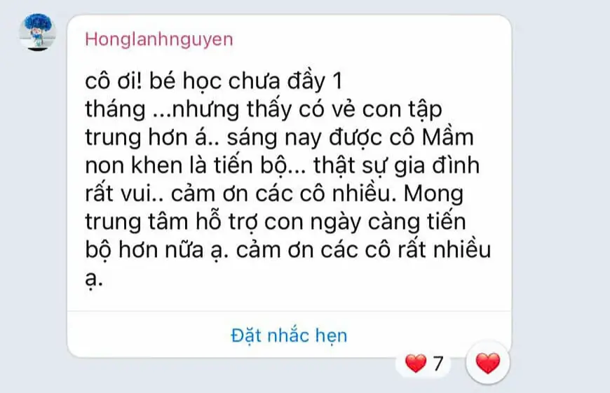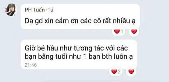 Những lời chia sẻ chân thực từ phụ huynh về hành trình tiến bộ của các bé khi tham gia chương trình.
